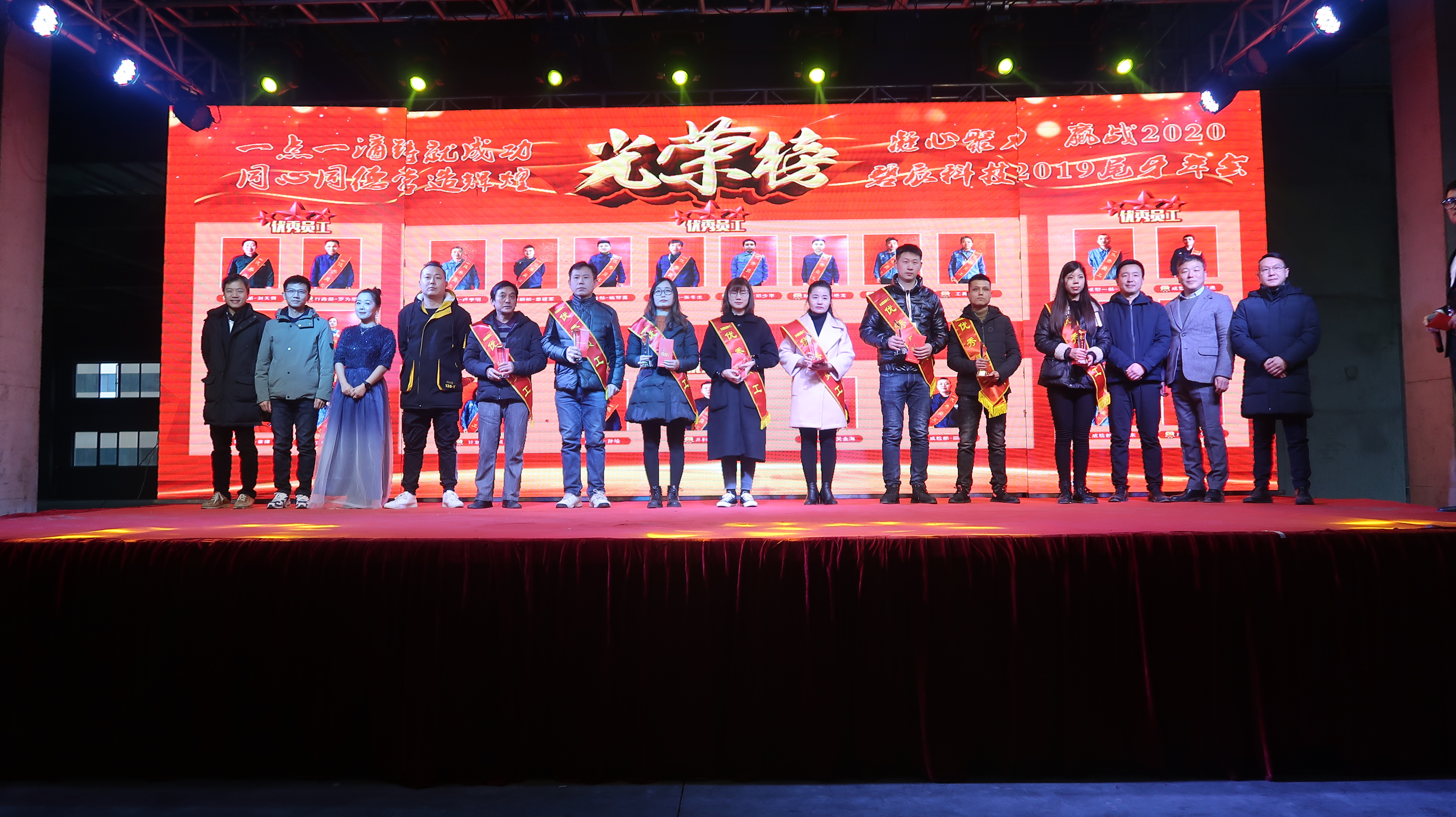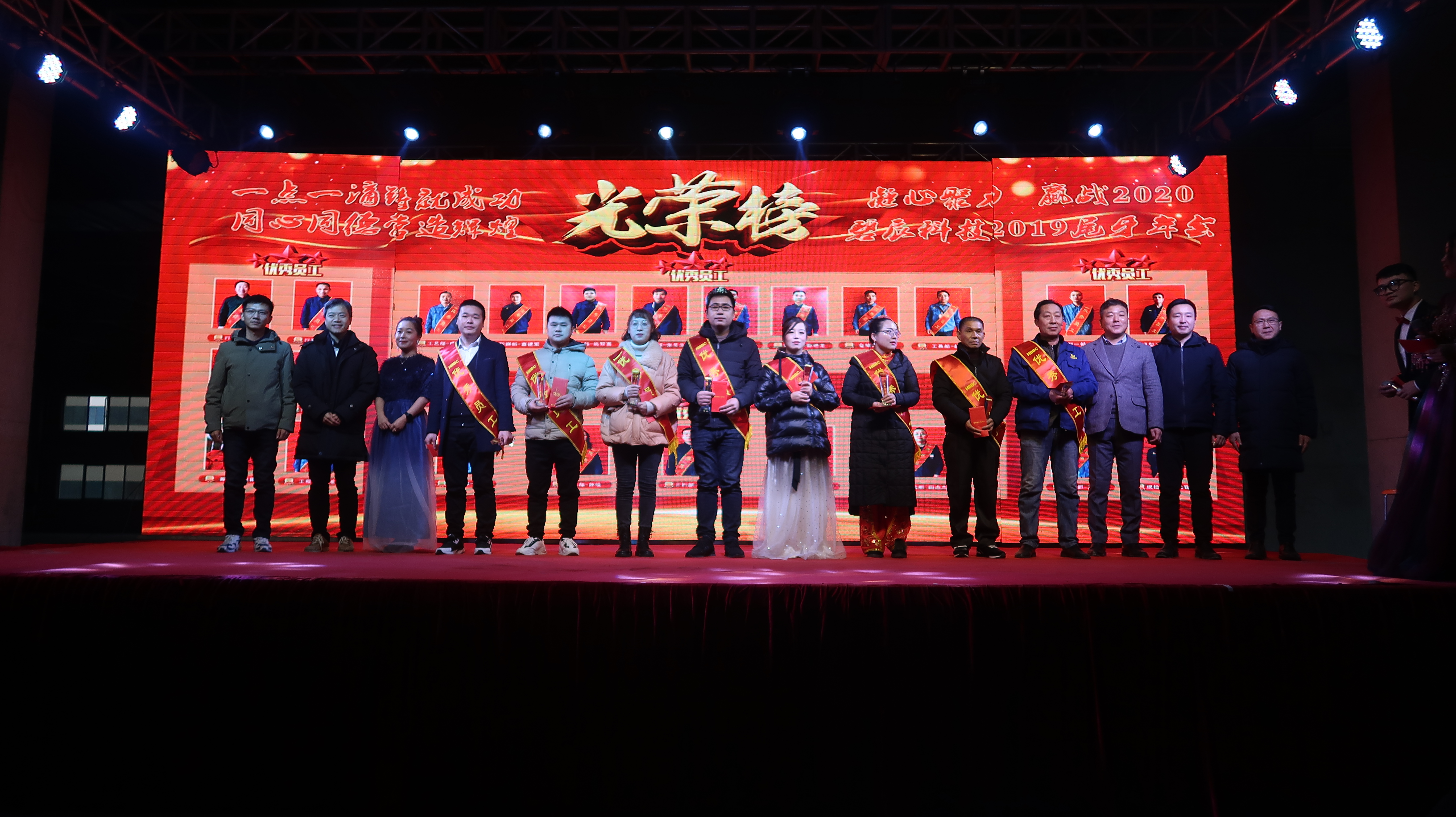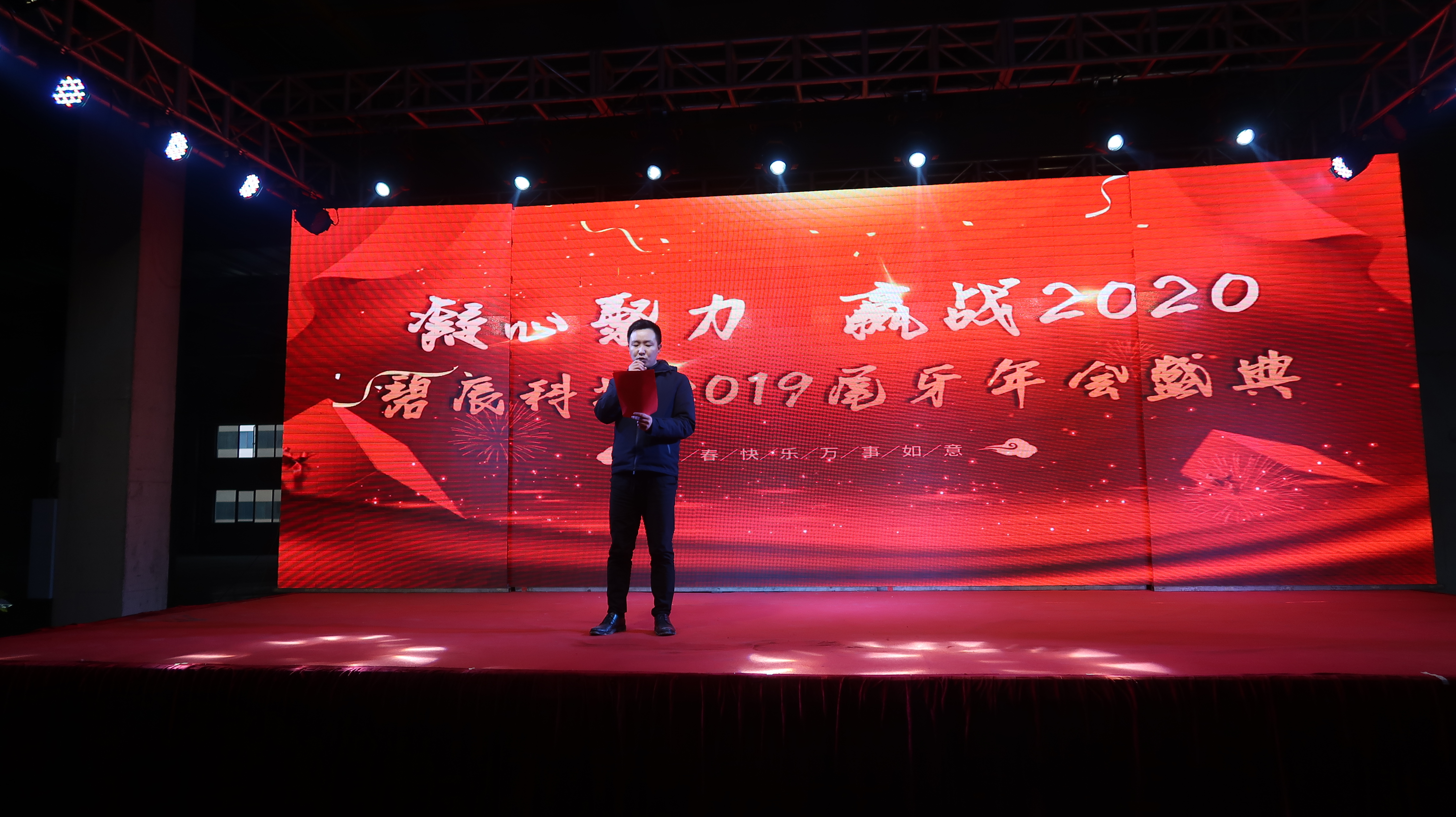 ? 2020年1月11日以"凝心聚力、贏戰(zhàn)2020"為主題的2019年度尾牙年會在廠內(nèi)三期廠房盛大召開,來自碧辰旗下各事業(yè)部的近1000多名員工歡聚一堂,在歡聲笑語中喜慶公司2019年度尾牙年會。尾牙年會在全體員工的熱情期待中拉開帷幕,劉董事長首先代表公司董事會并以個(gè)人名義,向在座各位員工及家人致以新年最美好的祝福和最誠摯的問候,回顧了充滿挑戰(zhàn)和拼搏的2019年所取得的斐然成績;隨后行政部經(jīng)理李朋宣讀了關(guān)于表彰2019年度優(yōu)秀員工的決定。