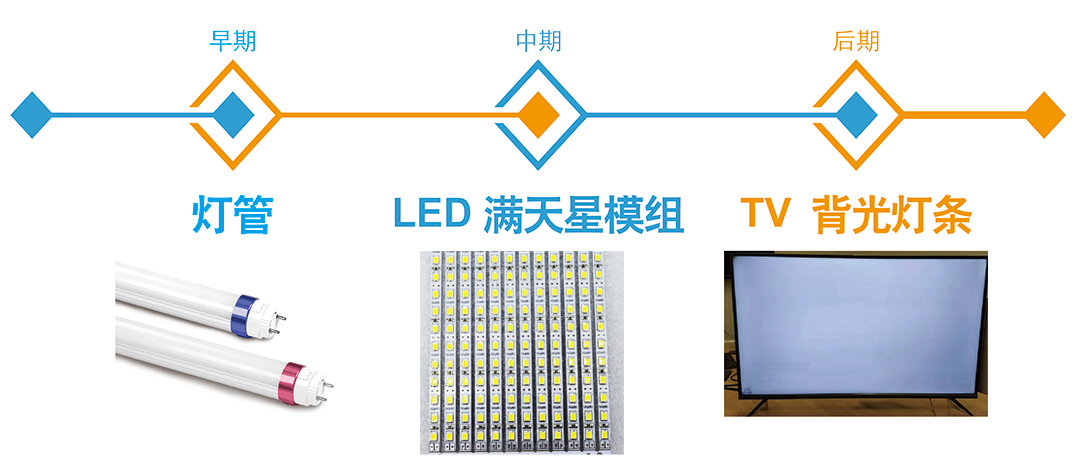 面板燈光源從最開始的燈管到后來的LED側(cè)入式模組,直到目前的面板背光源燈條,其發(fā)展路徑與電視光源的完全相似。未來的市場也一定會(huì)像TV背光市場一樣廣闊。